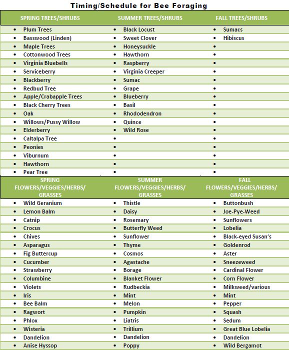 At different times in a growing season our bees forage for pollen and nectar from organic and native trees, plants and flowers on our property.